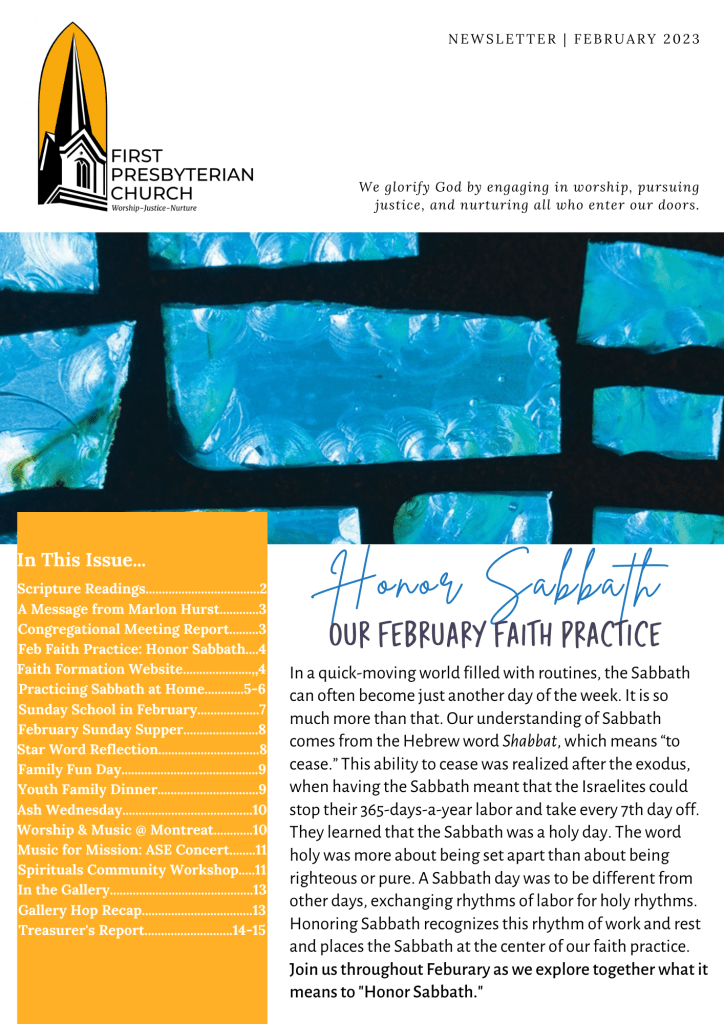 The February ’23 church newsletter (click the image to see the newsletter).